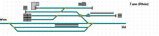 hier sogar nur ein 4-Schienengleis zum Bahnhof Hilders, um den Einbau einer Weiche zu vermeiden.