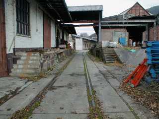 Die Gleise führen dannach von links in das Werksgelände im linken Bild, auf dem sich jetzt ein