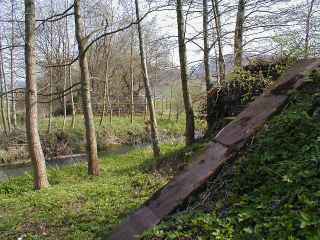Nur noch die Widerlager sind von der ehemaligen Brücke über die Frieda erhalten. Nördlich (links in den Bildern)