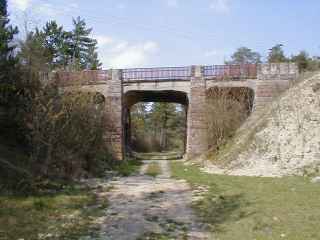 das rechte. Hinter der Brücke zweigt der Weg zum Bahnhof ab (Aufnahme April 2004).