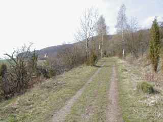Hier gab es einst noch ein 2. Gleis links vom Weg im linken Bild (Aufnahme April 2004).