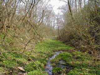 Verlauf ist der Graben noch gut erhalten (rechts Bild) (Aufnahme April 2004).