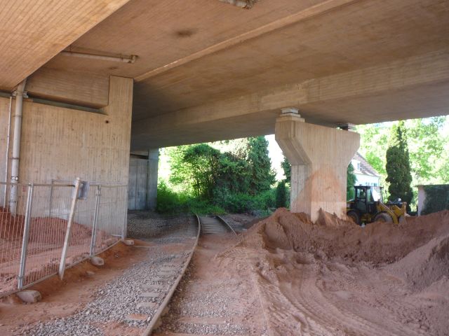 Anschließend führen beide Gleise unter der Brücke der B 424 (hier die Bubenhauser Straße) hindurch.