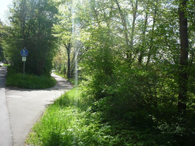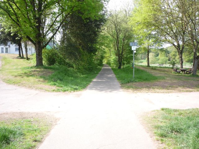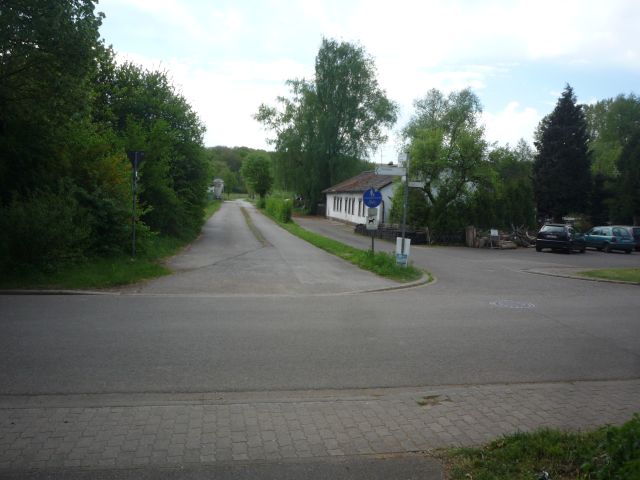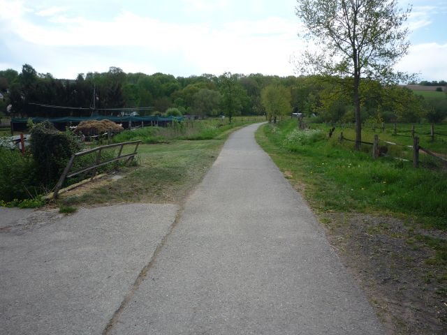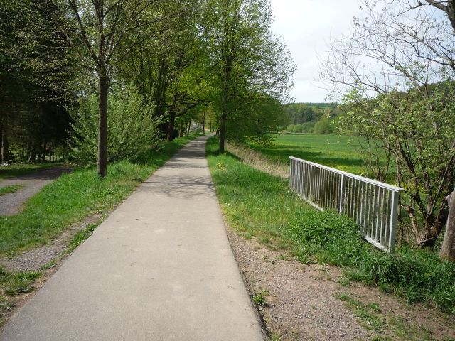 Etwa 300 m weiter schwenkt die Bahntrasse etwas von der Straße ab. Ab hier liegt auf ihr