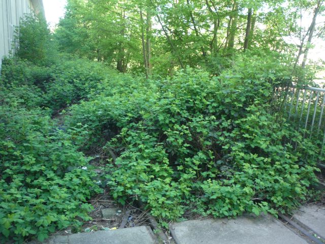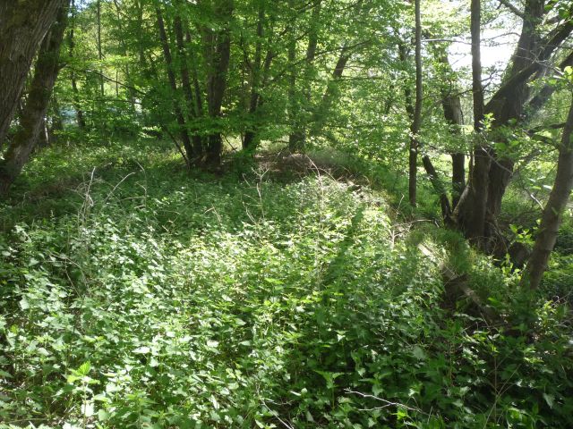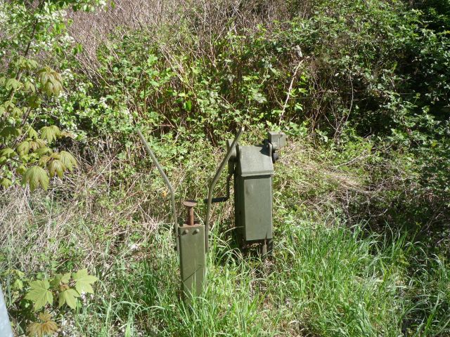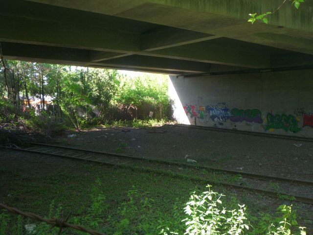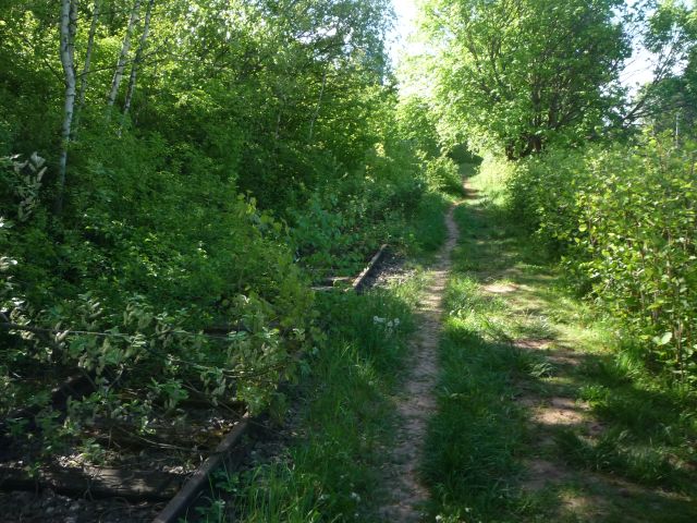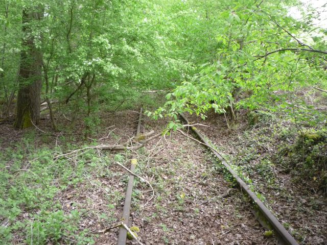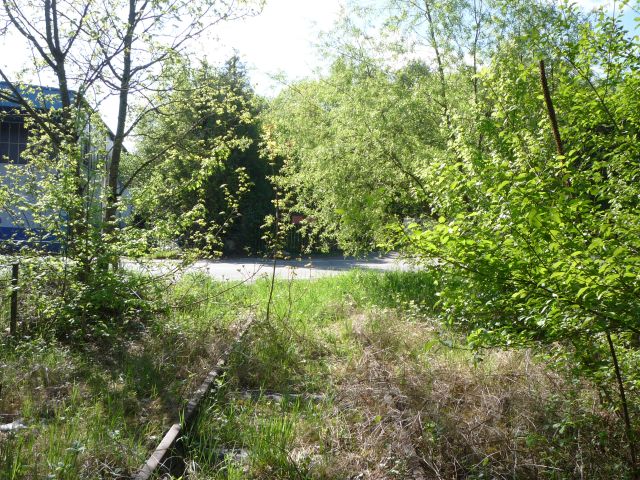 Im Gestüpp versteckt befindet sich eine Weiche, deren linker Anschluss zu einem Industieanschluss führte.