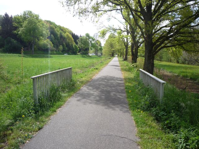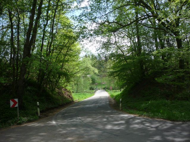 Die Trasse verläuft nun meist unmittelbar neben der Straße, hier gibt es noch einen Durchlass.