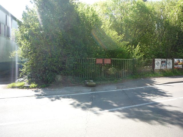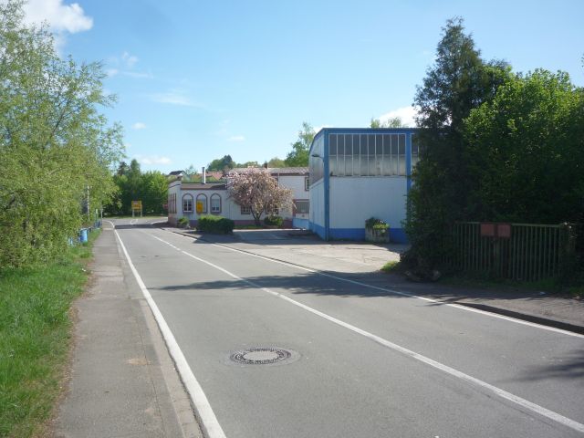 Direkt auf der gegenüberliegenden Straßenseite befindet sich die Einfahrt ins Metallwerk.