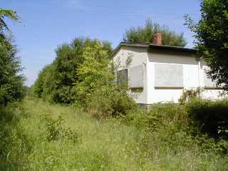Betonbaracke sehen, die einmal das Stellwerk an der Osteinfahrt gewesen sein könnte.