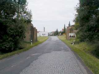 deutlich tieferem Niveau geführt, was eine Stützmauer notwendig machte. Von der Straße aus