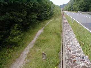bei km 11,2. Nach dieser Mauer liegen Straße und Trasse bis kurz vor das Werratal